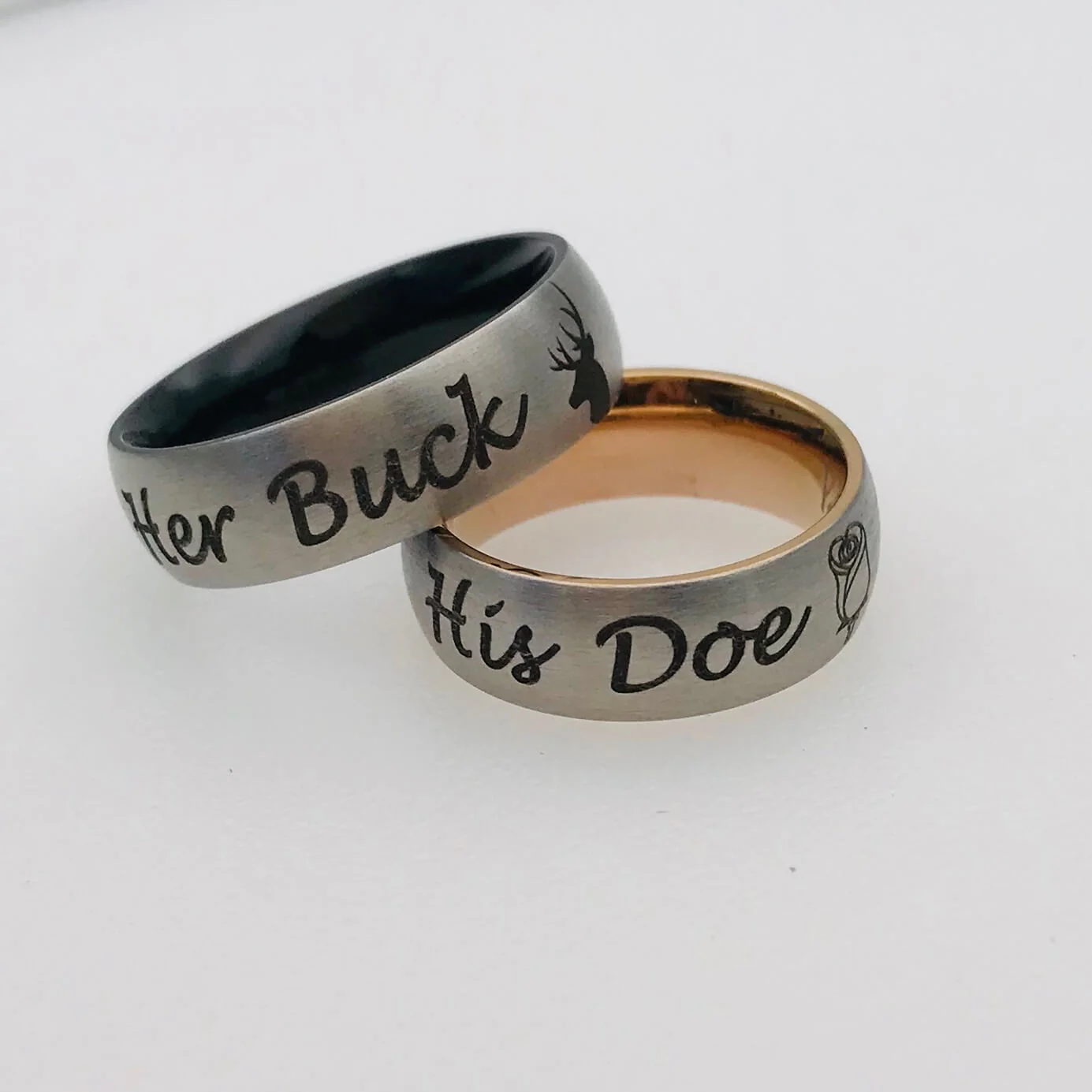 This couple's set can be engraved name, date, letters, coordinate, numbers, Roman numbers, symbol, etc.